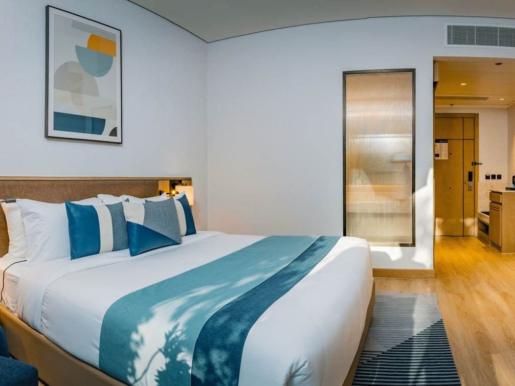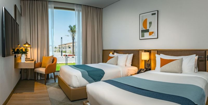 Choose from King, Twin, or Superior Rooms and step into a sanctuary where every detail feels effortless. Plush bedding welcomes you to unwind, serene views of the pool, gardens, or the Corniche soothe the spirit, and elegant finishes create a sense of quiet refinement. Smart IPTV systems, in-room tablets, and high-speed Wi-Fi keep you seamlessly connected, while intuitive amenities anticipate your every need. Here, you do not just stay. You live in balance, ease, and understated luxury.